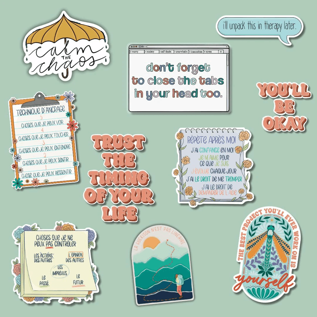 | Style | Ask Me About My Social Battery, Be Kind To Your Mind, Blooming In Progress, Call Me Anti-Social But Please Don't Call Me, Hello I Am Trying My Best, Leave Me Alone, Nah, Nothing Changes If Nothing Changes, Self-Love Club, Veni Vidi Vici Anxiety |
